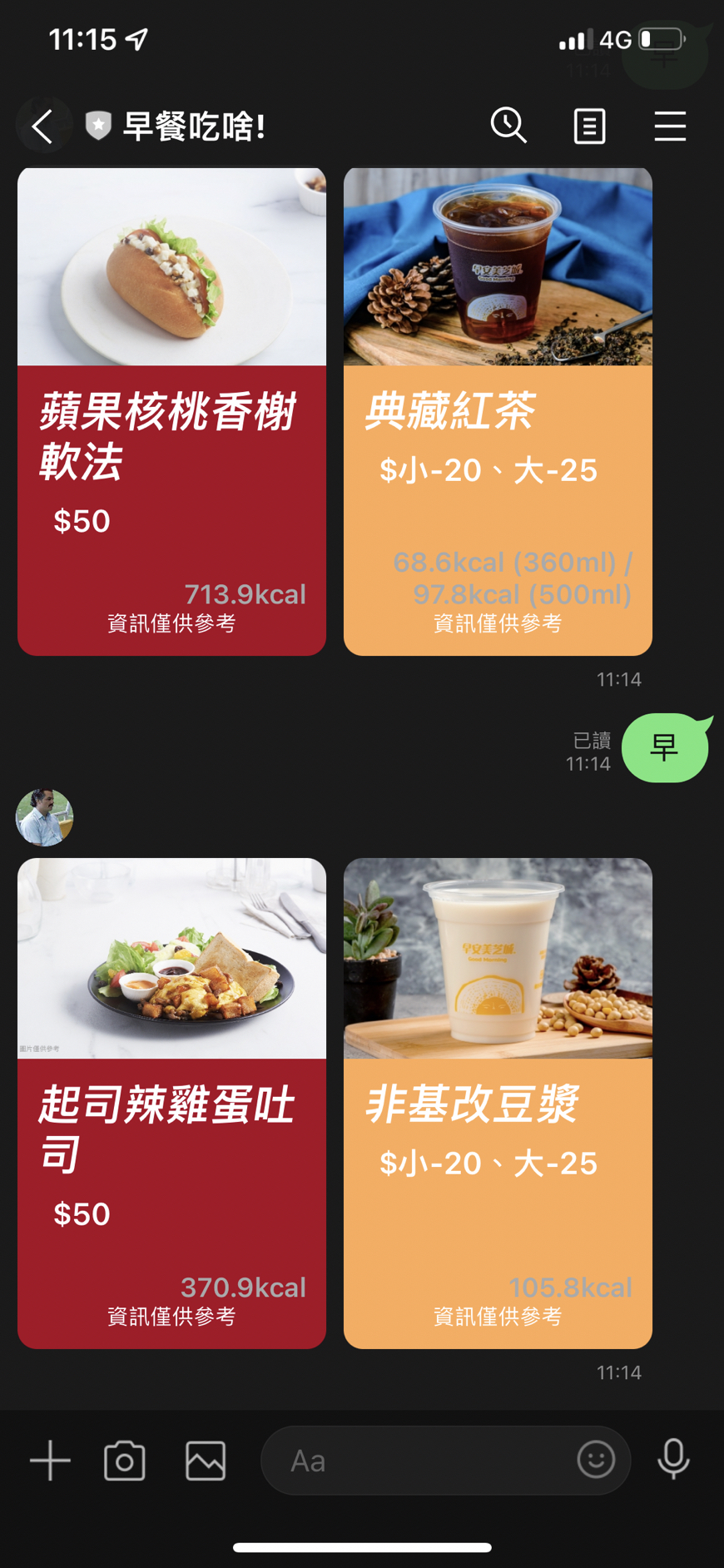 在 Node.js 環境下,搭配 Linebot 套件,製作 Line 機器人。受夠了每天起床都要想早餐吃什麼且公式化的生活嗎? 現在只要對機器人輸入「早」,機器人就會幫你選出今日菜單。